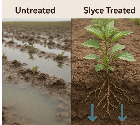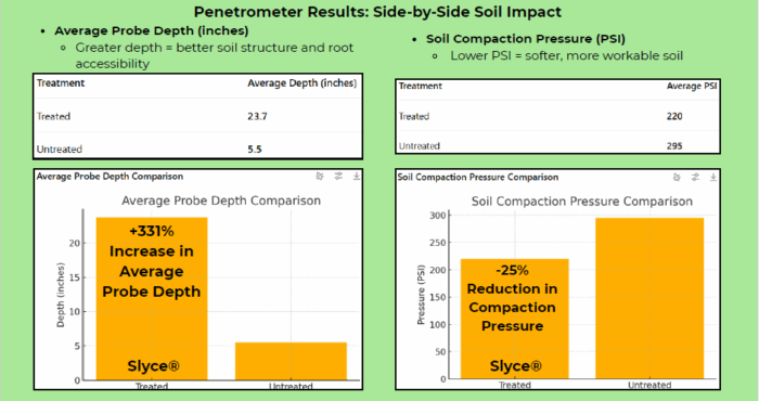 Use Cell Power® SLYCE® Ca8% wherever soils show water penetration problems, compaction, or salt stress.