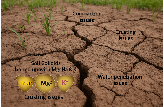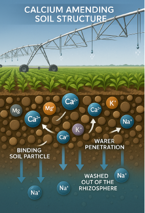 - Calcium stabilizes soil structure and displaces salt